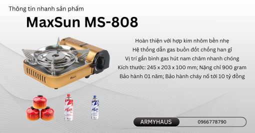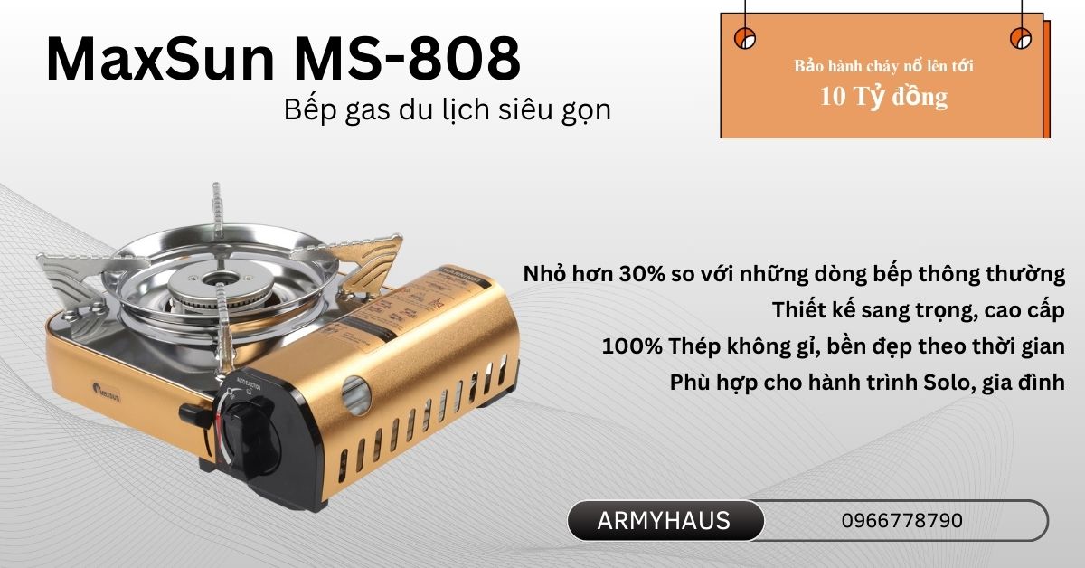 Bếp ga siêu nhỏ gọn Maxsun MS-808 – Sản phẩm liên doanh chính hãng, bảo hành linh hoạt. 10 tỷ cho mọi trường hợp cháy nổ, 01 năm bảo hành cho mọi lỗi sản phẩm.