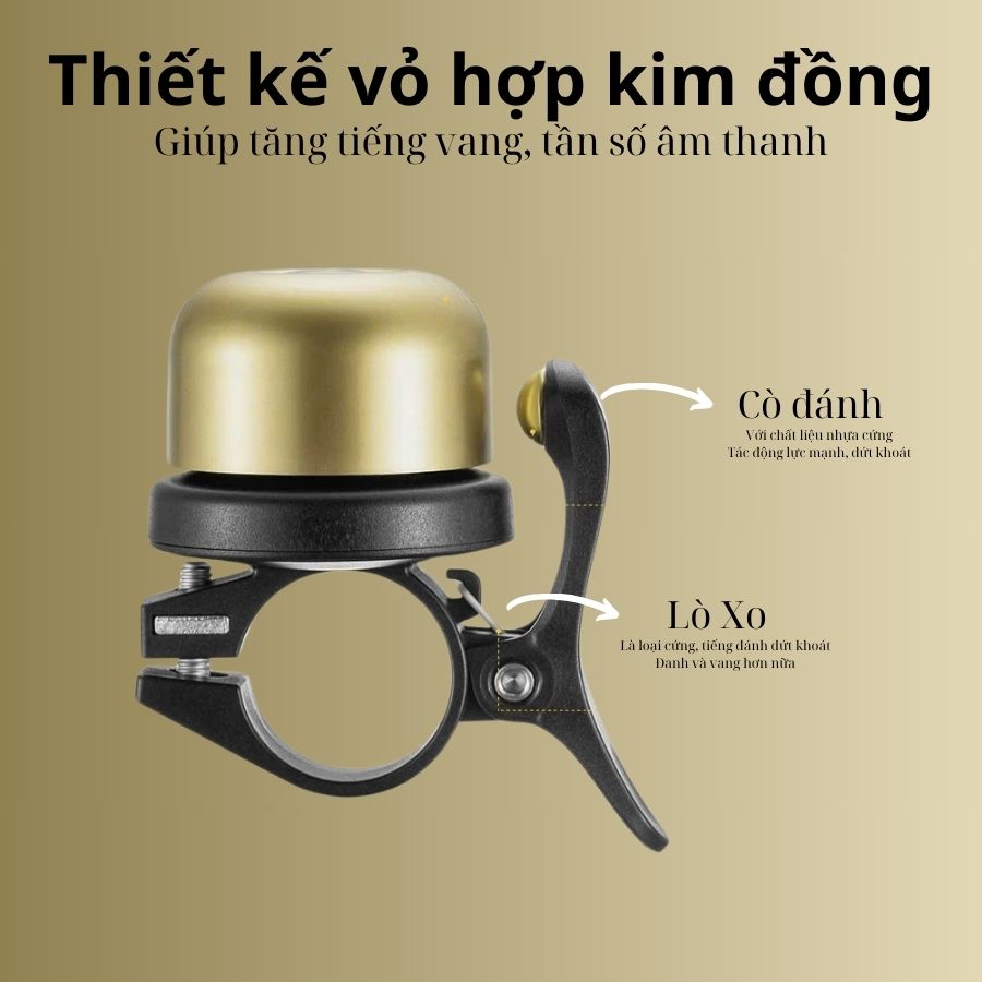 Với tiếng đánh đanh, vang xa tới khoảng cách chừng 50 mét. Chuông đồng xe đạp Rockbros 34210003 là một trang bị cơ sở, cho mọi sự an toàn. Kiểm soát tốt mọi tình huống khi đi đường, di chuyển của mình. Cùng những ưu điểm đại khái như: