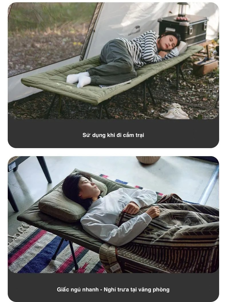 Đệm cho giường cắm trại Naturehike CNK2300DZ022. Làm mất đi ưu điểm thoáng mát, thông khí và thoải mái của giường cắm trại. Song nó là một sản phẩm của mùa đông, của khả năng giữ ấm. Và cải thiện độ êm, thoải mái khi nằm – sử dụng giường cắm trại.