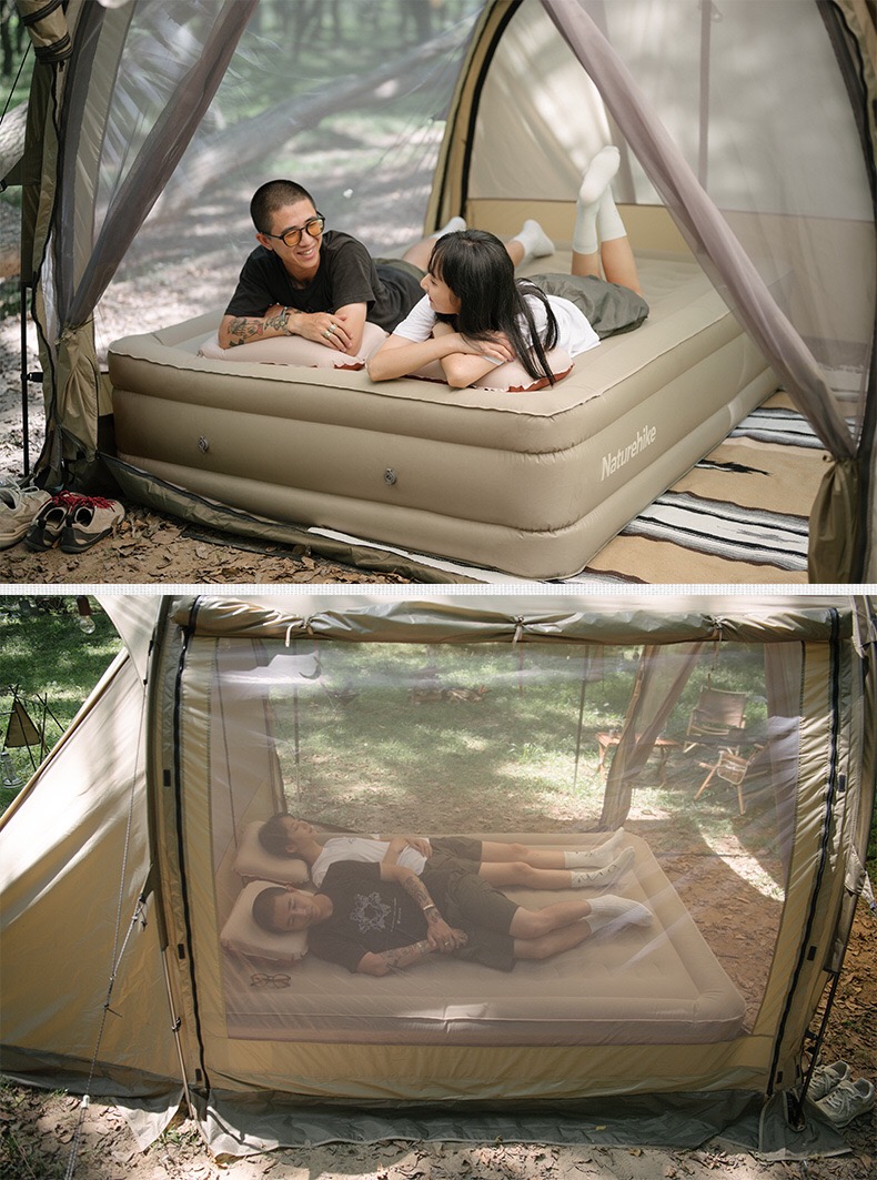Đệm đôi Glamping siêu dày Naturehike NH21FCD08. Với cấu hình êm ái, rộng rãi cho 02 người lớn 01 trẻ em. Không gian nghỉ ngơi có độ êm ái đồng đều ở mọi vị trí, nhờ khoang hơi lớn, cùng những vị trí ống hơi độc lập. Hình thức cao cấp với bề mặt phủ dả da cực chảnh.