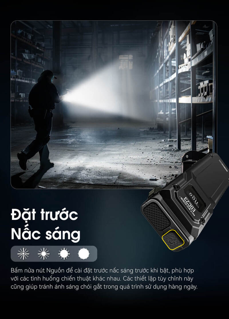 Nhằm mang tới một sản phẩm – hệ thống chiếu sáng. Khả năng tự vệ – bao quát không gian – dự báo tình huống với mức linh hoạt cực cao. Với sự chủ động cực lớn, khi sản phẩm được chọn và đồng hành trong hành trình thám hiểm. Và thích nghi với tự nhiên hoang dã của quý vị.