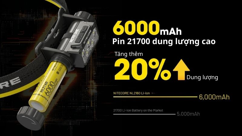 - Pin dòng 21700, cho mức điện tích cao, kéo dài >20% thời gian sử dụng so với sản phẩm cùng thông số, hiệu quả chiếu sáng