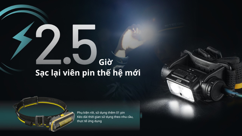 Những con số cho ra đáp ứng tốt khoảng 02 ngày làm việc hiệu quả. Chưa kế, với nhóm người dùng là Tour Guide, dẫn đoàn leo núi. Đèn pin đội đầu siêu nhẹ Nitecore NU50 hỗ trợ hiệu quả tới 03 ngày 02 đêm. Chưa kể, khi bạn chọn sử dụng phụ kiện bổ sung, sử dụng thêm 01 viên pin cùng loại hỗ trợ.