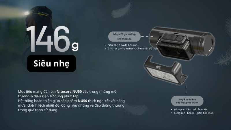 Đèn pin đội đầu siêu nhẹ Nitecore NU50 – Thiết bị chuyên dụng