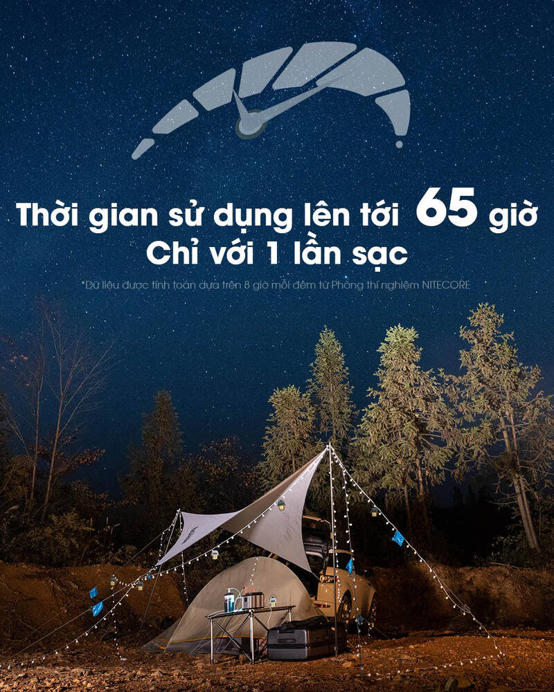 - Ánh sáng trung tính: 10LM – 65 giờ; 100LM – 8 giờ