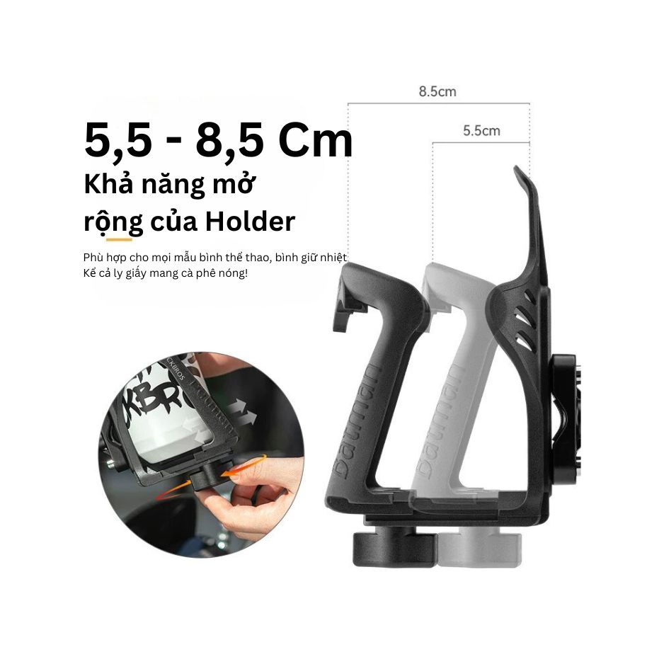Sau đó, nói về ưu điểm của sự dẻo dai cũng mang tới độ ôm của Holder chắc hơn. Khách hàng có thể thu độ rộng của vị trí khay giữ cốc nhỏ lại một chút. Ưu điểm của sự dẻo dai, khả năng định hình lại như ban đầu cực mạnh. Luôn mang tới cảm giác đưa chai, bình giữ nhiệt, hay những ly nhỏ vào cực kỳ dễ dàng.