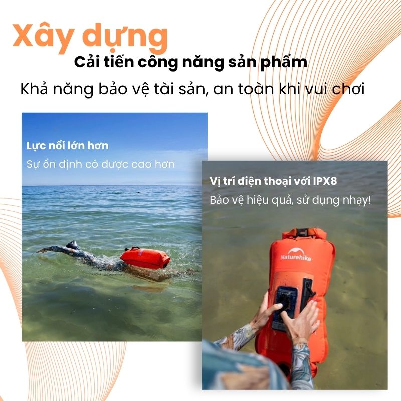 Vừa là túi đồ, vừa là phao bơi. Sản phẩm Túi mang đồ khô thể thao nước Naturehike NH17S001-G 02 trong 01. Mang tới phương pháp buộc liền thân, cố định ôm sát cơ thể an toàn. Hoặc thả xa hỗ trợ, nhằm mang tới người dùng trải nghiệm sử dụng, và hoạt động với sự thoải mái cực cao.